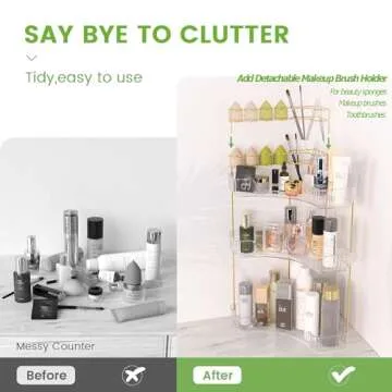 NATURE'S SOURCE Makeup Organizer for Vanity, 3-Tier Corner Bathroom Organizer Countertop with Makeup Brush Holder, Corner Counter Storage for Bathroom, Dresser, Kitchen(Clear