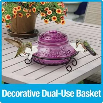 Show moreWelcome the delicate beauty of nature right to your backyard with the Nature's Way Bird Products ANTHF1 Antique Top-Fill Hummingbird Feeder. This stunning feeder is not only a practical addition to your outdoor space but also an exquisite piece of decor. Crafted from antique textured glass, it harmonizes aged elegance with functional design, allowing you to attract more hummingbirds while complementing your garden aesthetics. Featuring a wide opening, this feeder allows for easy filling and cleaning, making maintenance a breeze. Let's not forget the user-friendly assembly that will have it ready for your feathered friends in no time, ensuring you can enjoy their vibrant presence all season long.