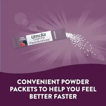 Nature's Way Cold + Flu Relief FastActives, Umcka, Homeopathic, Fever, Sore Throat, Cough, Congestion, Body Aches, Phenylephrine Free, Non-Drowsy, Berry Flavored, 10 Packets (Packaging May Vary)