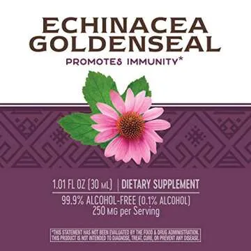 Show moreUnleash the power of nature with our exceptional herbal supplement, Nature's Way Echinacea-Goldenseal. This product is designed to bolster your immune system effectively with a unique blend of seven highly respected herbal ingredients, including Echinacea purpurea, goldenseal root, and burdock root. Each of these components has been carefully selected for their individual qualities, making this a powerhouse of health benefits.
