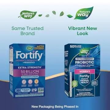 Nature's Way Women's Extra Strength** Fortify Probiotic, 50 Billion Live Cultures, Supports Digestive, Vaginal, & Immune Health*, Plant-Based Prebiotic Fiber, Non-GMO, 30 Capsules (Packaging May Vary)