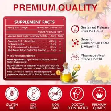 NATURE TARGET CoQ10-400mg Plus PQQ with Vitamin E & Organic Olive Oil - Coenzyme-Q10 with BioPerine - High Absorption Antioxidant-for-Heart-Health and Energy Production,120 Servings