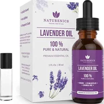 Naturenics Lavender Essential Oil | 100% USDA Organic Therapeutic Grade | Aromatherapy to Promote Relaxation, Sleep, Tension Relief | For Diffuser & Topical Use | Roll On Bottle & eBook- 1 Fl Oz