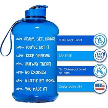 NatureWorks HydroMATE Half Gallon Water Bottle with Times to Drink BPA Free Leak Proof Reusable Jug with Handle 64 oz