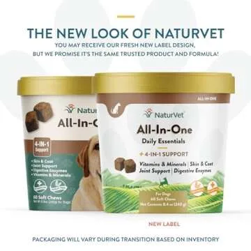 NaturVet All-in-One Dog Supplement - for Joint Support, Digestion, Skin, Coat Care – Dog Multivitamins with Minerals, Omega-3, 6, 9 – Wheat-Free Vitamins for Dogs – 60 Soft Chews