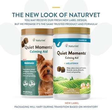 NaturVet Quiet Moments Calming Aid Melatonin Dog Supplement – Helps Reduce Stress in Dogs – for Pet Storm Anxiety, Fireworks, Motion Sickness, Grooming, Separation, Travel – 240 Ct. Chews