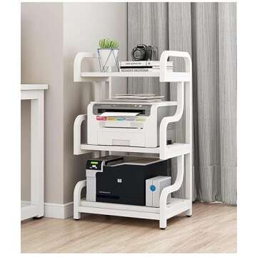 Natwind 3-Tier Printer Stand with Wheels Movable Storage Cart Floor-Standing Multi-Purpose Shelf Rack for Media Player Scanner Files Books Microwave Oven in Kitchen Living Room Home Office (White)