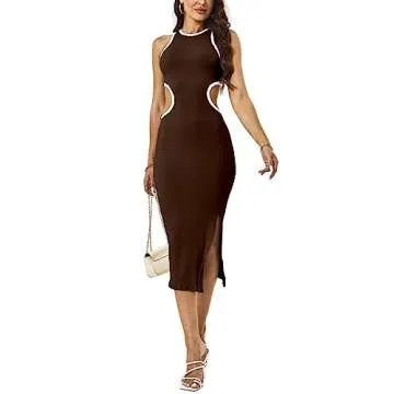 Show moreIntroducing the NauLon Women's Sexy Cut Out Waist Open Back Bodycon Dress, a stunning addition to any fashionista's wardrobe. Crafted with a premium blend of **92% Rayon and 8% Spandex**, this dress promises both comfort and style. Its cut-out waist and open back design beautifully highlight your silhouette, making it an irresistible choice for a variety of occasions. The **crew neckline** and **sleeveless** styling provide a fresh look, while its **slim fit** and **high-stretch fabric** ensure that it hugs your curves in all the right places. With its midi length cut, this dress is designed to flatter every figure, giving you that fabulous, confident vibe.