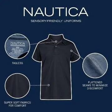 Nautica's sensory-friendly uniform is design for children with sensory clothing needs. This super soft polo is designed to minimize discomfort when in contact with the skin