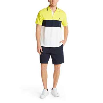 Show moreIntroducing the Nautica Men's Short Sleeve 100% Cotton Pique Color Block Polo Shirt, an essential addition to your wardrobe that seamlessly blends style and comfort. Crafted with a sporty polo collar and a classic buttoned placket, this shirt features the iconic J class logo at the chest, symbolizing Nautica's commitment to quality and timeless design. The vibrant Blazing Yellow color not only adds a splash of brightness to your outfit but also makes it an eye-catching choice for any occasion. Its classic fit ensures that you look sharp and feel good, whether you're dressing up for a casual outing or enjoying a weekend by the beach.