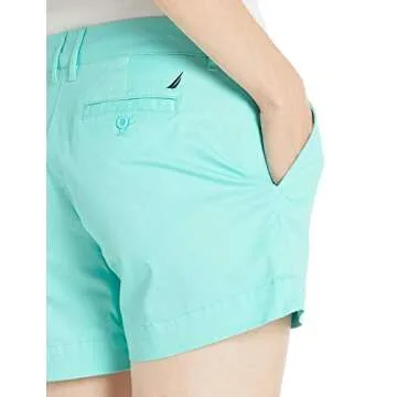 Show moreStep into summer with style and comfort with the Nautica Women's Comfort Tailored Stretch Cotton Solid and Novelty Short. Designed for the modern woman, these shorts combine a chic look with uncompromised functionality. Whether you're heading out for a casual day at the beach or a brunch with friends, their flattering Aruba Blue shade will keep you looking effortlessly stylish. Featuring a zip fly with button closure and a classic 4-pocket style, these shorts blend practicality and fashion seamlessly. Crafted from quality stretch cotton, their 5-inch inseam provides just the right coverage, making them perfect for warm weather adventures.