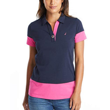 Nautica Women's Toggle Accent Short Sleeve Soft Stretch Cotton Polo Shirt, Navy, Small