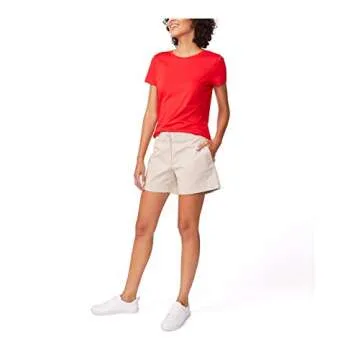 Show moreNautica Women's Comfort Tailored Stretch Cotton Shorts are the ultimate addition to any woman's summer wardrobe. Crafted with high-quality cotton, these shorts offer a perfect blend of comfort and style, featuring a chic oxford tan color that pairs wonderfully with a variety of tops. The zip fly with button closure ensures a secure fit, while the 4-pocket style provides ample storage for essentials. Plus, with a 5-inch inseam, these shorts strike the ideal balance between comfort and modesty, making them perfect for any occasion.