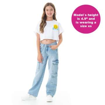 Show moreIntroducing the Nauty Blue Girl's Baggy Pants with Adjustable Waist Band – the ultimate combination of style and comfort for the fashion-forward teen! Crafted from 100% cotton, these high waist, wide-leg cargo jeans are designed to provide a relaxed and trendy fit that is perfect for girls aged 6-14 years. The pants not only boast a unique baggy silhouette but are also equipped with practical flap pockets that add a stylish flair while enhancing functionality. Dress them up or down – these versatile jeans are destined to become a staple in your young fashionista's wardrobe!