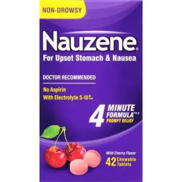 Nauzene Upset Stomach & Nausea Chewable Tablets Flavor, Wild Cherry, 42 Count (Pack of 1)
