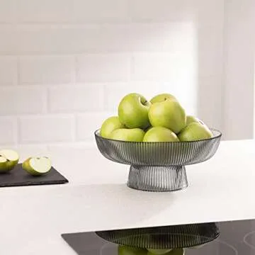 Navaris Glass Fruit Bowl - Decorative Fluted Colored Glass Bowl for Fruit Snacks Candy - 10.2" Diameter Table Centerpiece Dish - Black Tinted Glass