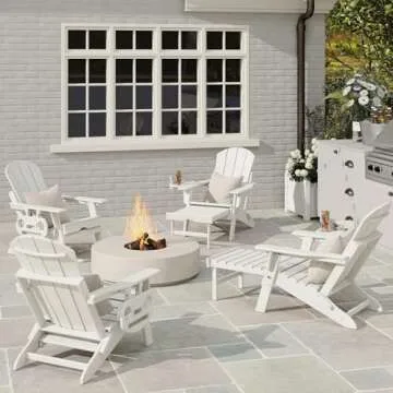 NAVINE Adjustable Adirondack Chair with Retractable Ottoman Set of 2, HDPE Folding Adirondack Chair with Cup Holder, All Weather Fire Pit Chair for Outdoor.