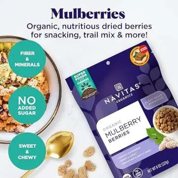 Navitas Organics Mulberries, 8 oz. Bag, 8 Servings — Organic, Non-GMO, Sun-Dried, Gluten-Free, Sulfite-Free (Pack of 1)