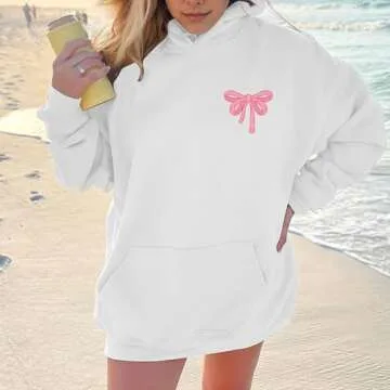 Navonta Womens Bow Hoodie Oversized Graphic Hoodies Teen Girl Long Sleeve Cute Bow Hooded Sweatshirts Coquette Clothes White