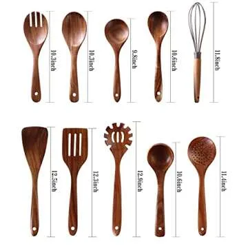 NAYAHOSE Wooden Spoons for Cooking, 10 Pcs Wooden Utensils for Cooking, NAYAHOSE Natural Teak Wood Spoons, Non-Stick Comfort Grip Kitchen Utensils Set
