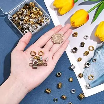 NBEADS 150 Pcs 15 Styles African Hair Beads, Beard Beads Big Hair Beads Tibetan Style Alloy Dreadlock Beads African Beads for Men Women Hair Braids Hair Decoration, Silver/Golden/Bronze, Hole 5-9mm