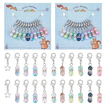 Show more Welcome to the world of creative crafting with the NBEADS 22 Pcs Imitation Pearl Stitch Markers! These delightful markers are more than just functional accessories for your knitting and crocheting; they are a colorful addition to your DIY projects that enhances your creative journey. Designed in a unique pearl shape, each marker is not only charming but also highly practical. The set includes 20 beautifully crafted pearl stitch markers and an additional 2 star stitch markers, ensuring you have a variety of options to keep your work organized and stylish. The pearl markers measure about 7mm in diameter while the stars are perfectly sized at 0.55 inch by 0.41 inch (1.4x1.05cm). Each set comes thoughtfully packaged with a separate ring for easy storage, ensuring that your beautiful markers are just a reach away whenever inspiration strikes.