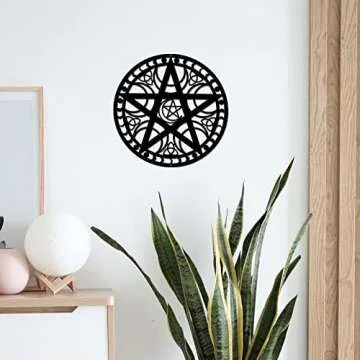 Show moreTransform your living space with the exquisite NBEADS Triple Moon Wall Art. This stunning piece of black metal wall hanging décor measures a generous 11.8 inches and showcases a captivating pentagram silhouette design. Expertly crafted from high-quality iron materials, this artwork reflects a blend of style and durability, ensuring it remains a focal point of elegance in your home for years to come. The rich electrophoresis black finish is not only visually appealing but also resistant to fading, rusting, and corrosion, making it a reliable choice for any decorative setting. Whether you are curating a whimsical Wiccan vibe or simply enhancing your modern decor, this metal art piece is designed to elevate any ambiance with its classic touch.