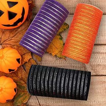 NBHH Halloween Mesh Ribbon Deco Metallic Fall Mesh Metallic Foil Black Purple Orange Green Mesh Rolls for DIY Halloween Project Wreaths Party Decorations Wrapping Craft, 4 Rolls