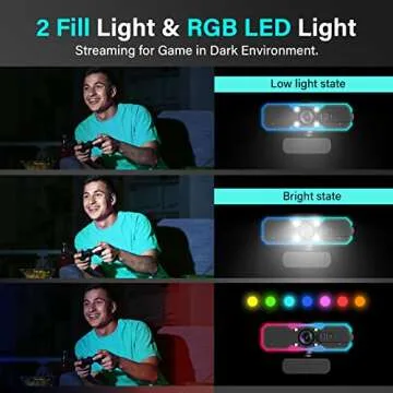 NBPOWER 1080P 60FPS Streaming Camera Webcam with Microphone and Fill RGB Light,Autofocus,Work with Laptop/Desktop Computer/Winsdows/Mac OS/PC Computer for Camera