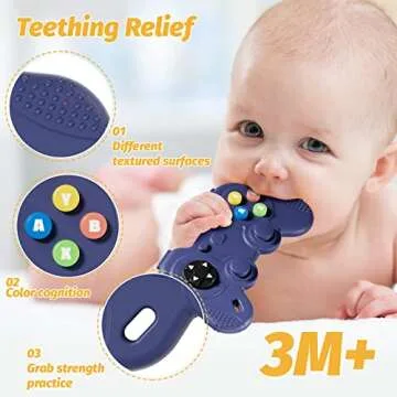 NCVI Christmas Baby Game Controller Toy 0-12 Months, Infant Video Gaming Controller Teether Toy with Joystick for Babies Chew and Teething Relief, Food-Grade Silicone for Newborn, BPA-Free