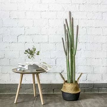 Accompanied by a chic woven seagrass basket, this artificial cactus effortlessly enhances the aesthetic of any indoor space, whether it’s a modern loft, a cozy farmhouse, or a minimalist office. Its realistic look, complete with sand and little stones in the pot, brings a touch of the outdoors inside without the hassle of maintenance. The expert craftsmanship ensures it remains upright and stable, making it an ideal choice for busy households and offices.