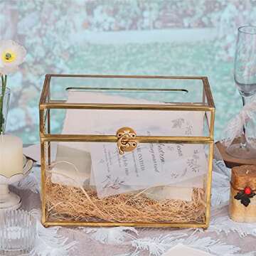 NCYP Gold Glass Card Box - 9.8" x 5.6" - Wedding & Birthday Reception Decor