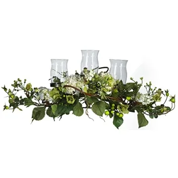 Nearly Natural Hydrangea Triple Candleabrum Centerpiece - Elegant Cream Decor