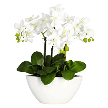 Show moreIntroducing the **Nearly Natural Phalaenopsis Silk Flower Arrangement** - a stunning creation that promises to transform any living space into a vibrant sanctuary. Designed with meticulous attention to detail, this artificial flower arrangement showcases three beautifully distinct stems adorned with lush, radiant blooms and charming berry buds. With its dimensions measuring **12 inches wide, 7 inches deep, and 16 inches high**, it is perfectly sized to add a touch of elegance without overwhelming your decor. Encased in a stylish white bowl-vase, this centerpiece is not only beautiful, but it's also versatile enough to fit seamlessly into your dining table, coffee table, or even your office desk, making it an essential element for any decor enthusiast.
