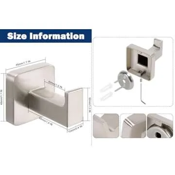 NearMoon Bath Towel Hooks -SUS304 Stainless Steel Square Clothes Robe Hooks Hanger, Heavy Duty Coat Hooks for Bathroom Livingroom Hotel Kitchen Garage, Wall Mounted - 3 Pack (Brushed Nickel)