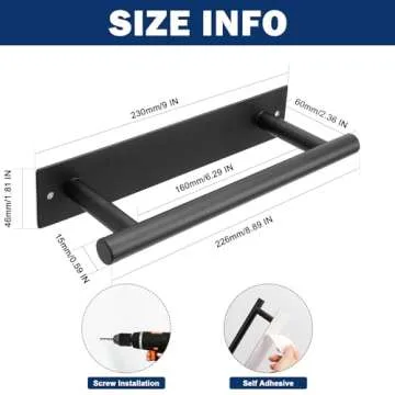 Show moreEnhance your home with the NearMoon Self Adhesive Hand Towel Holder, the perfect blend of functionality and contemporary design. This towel holder is not only rustproof, thanks to its premium SUS304 stainless steel construction, but also incredibly practical, allowing for easy installation in any space. You won't need to worry about drilling holes as this innovative towel rack features a strong self-adhesive backing that firmly attaches to smooth surfaces like tiles, glass, and metal. Measuring 9 inches in length and standing 2.36 inches away from the wall, it's designed to hold hand towels, bath towels, or dish towels effortlessly.