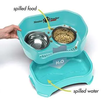 Show more The Neater Feeder is a revolutionary feeding solution designed to keep your pet's feeding area clean while providing comfort and convenience for both you and your furry friend. With its innovative mess-proof, spill-proof, and kick-proof design, this product ensures that not a single drop of water or morsel of food goes to waste. Instead of scattering food all over your floor, the Neater Feeder contains spilled food on the top while water drains into a special bottom basin, keeping your floors spotless and your pet happy.