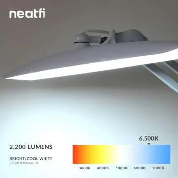 Show moreIntroducing the Neatfi XL 2,200 Lumens LED Task Lamp, a revolutionary solution for illuminating your workspace! This exceptional desk lamp boasts a remarkable brightness of 2,200 lumens, making it an ideal choice for any activity that requires clarity, such as reading, crafting, or detailed work. Constructed with a durable metal post, it offers both stability and longevity, ensuring that it outlasts your previous lighting solutions.
