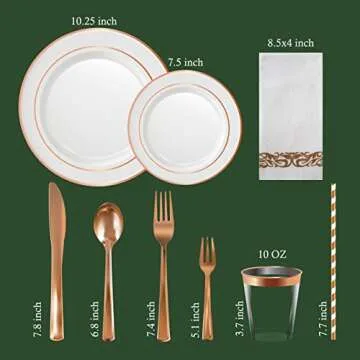 Neatiffy 225 Pcs Rose Gold Rim Disposable Plastic Dinnerware Set (25 Guest) | 25 x (Dinner Plate, Dessert Plate, Plastic Silverware, Cup, Napkin, Straw) | For Wedding, Luxurious Party, Special Event