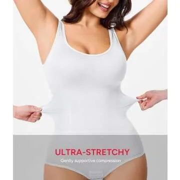 Nebility Women Waist Trainer Bodysuit Slim Full Body Shapewear Seamless Round Neck Jumpsuits Tummy Control Tops (XL/2XL, White)