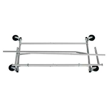 Measuring 4 feet long and equipped with two 1-foot pull-out extensions, you'll find ample space to hang everything from coats and dresses to bags and accessories. Its space-saving design allows it to fold down to just 5 inches, making it incredibly easy to tuck away under a bed or fit in the trunk of your car for on-the-go events, such as yard sales or fashion shows.