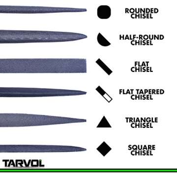 Needle File Set Hardened Alloy Strength Steel - Mini Needle File Set Includes Flat, Flat Warding, Square, Triangular, Round, and Half-Round File.
