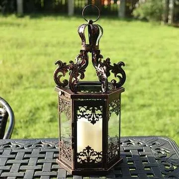 NEEDOMO Large Lanterns Decorative Outdoor, 17.7" Black Lanterns Decor Indoor with Tempered Clear Glass, Vintage Metal Hanging Candle Holder for Patio, Front Porch, Table, Wedding, Shelf