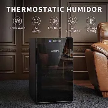 Show more Introducing the cutting-edge ELECTRONIC CIGAR HUMIDOR WITH HEATING from NEEDONE, designed for the discerning cigar aficionado who demands optimal storage conditions for their prized collection. This innovative humidor offers an impressive temperature range of 54℉ to 74℉, allowing you to accurately heat or cool the interior to the precise degree required for ideal cigar preservation. Gone are the worries about fluctuating indoor temperatures affecting humidity and the overall quality of your cigars. With a controlled environment tailored for long-term storage, this humidor ensures your cigars will age gracefully, maintaining their rich flavors and aromas.