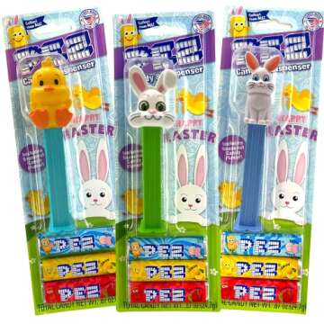 Needzo 2025 Easter PEZ Dispensers with Refill Roll Variety, Sugar Cookie, Cherry, and Lemon Candy, Flavored Hard Candies, Assorted Characters with Individually Wrapped Dispenser Refills (Pack of 3)