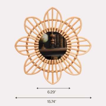 Show more Introducing our exquisite Natural Rattan Mirror, a stunning fusion of craftsmanship and organic beauty. Each mirror is meticulously woven by skilled artisans who have honed their rattan weaving techniques over years, ensuring a truly unique piece for your home. The natural rattan, known for its strength and durability, brings warmth and a rustic touch to any decor setting.