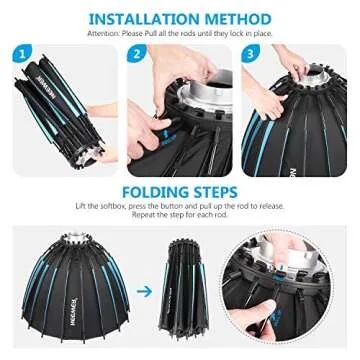 Neewer's commitment to delivering durable and well-constructed products is evident in this softbox. It is not only lightweight, making it easy to transport, but also designed for quick assembly and disassembly. Despite not coming with instructions, users have found its installation to be straightforward and intuitive. Experience the quality of Neewer products first-hand and elevate your photography game.