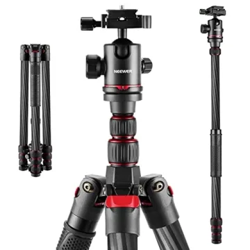 The Neewer Carbon Fiber Tripod extends up to 79 inches, allowing for versatile shooting angles.