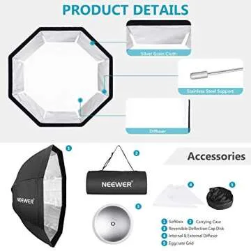 Neewer 90 cm Octagonal Foldable Softbox with Bowens Mount, Diffuser and Detachable Grid, Quick Folding Soft Box with Bag for Flash Speedlite Projector Spot Light Photo Studio