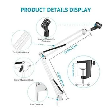 One of the standout features of this stand is its remarkable maximum load capacity of 1 KG. It is suitable for an array of microphones, including popular models like the Blue Yeti and Snowball. The adjustable arms allow you to find your ideal angle and height, ensuring you can capture the perfect sound without taking up too much desk space. With a maximum microphone clip diameter of 1.26", it securely holds various microphone types, making it a versatile choice for any audio project.